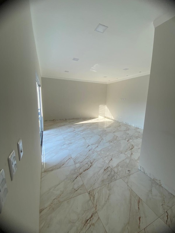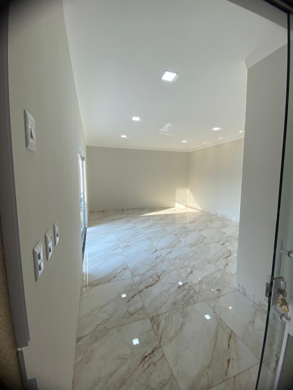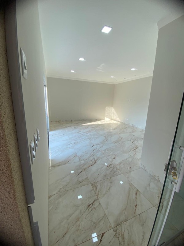 - Acabamento: Piso com revestimento marmorizado de alto brilho e teto com sancas de gesso.